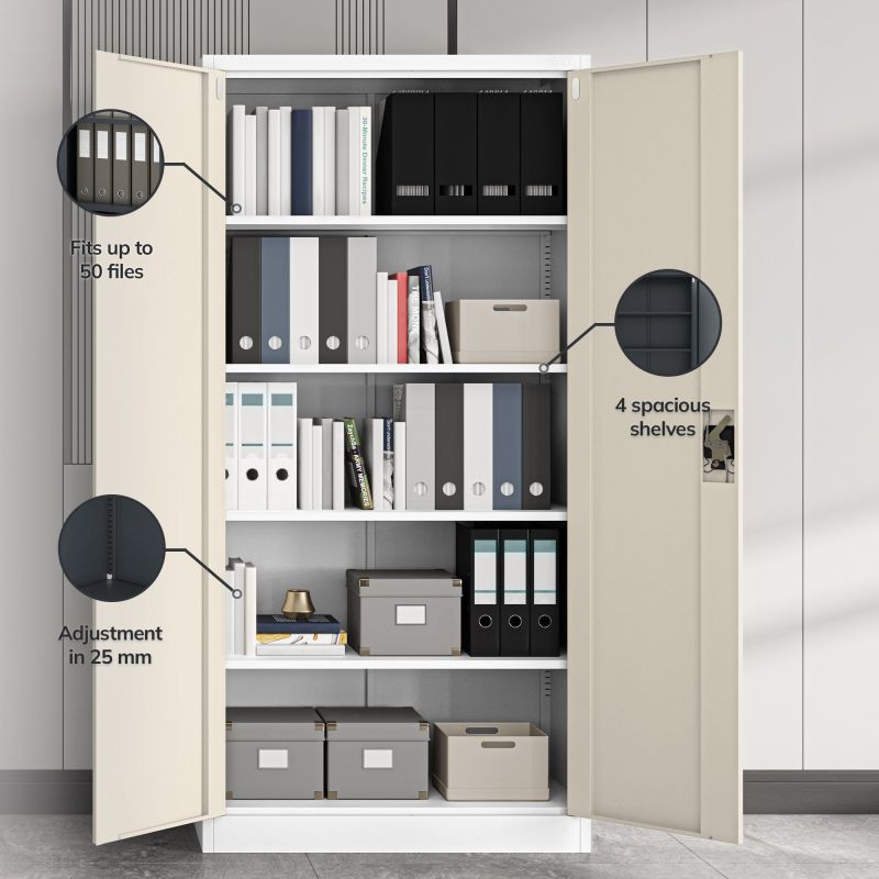 Jan Steel failu skapis ir izveidots, lai izpildītu visas tā lietotāju prasības. Tās plaukti ir regulējami ik pēc 25 mm, un tos var viegli pielāgot jūsu vajadzībām. Katra plaukta slodzes ietilpība ir pat 50 kg. Jana ietilpība ir līdz 50 saistvielām.