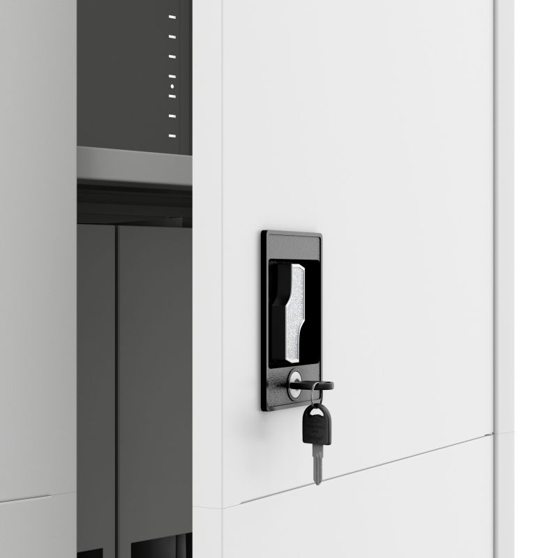 JAN modelis ir izgatavots no 0,6 mm bieza, pulverkrāsota tērauda. Pateicoties tam, biroja skapis ir ārkārtīgi izturīgs, stabils un noturīgs pret bojājumiem.