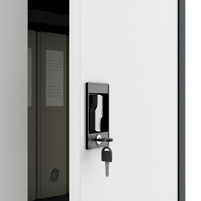 KEVIN metāla skapis, kas aizverams ar slēdzeni, ir lieliska izvēle ne tikai birojiem un valsts iestādēm, bet arī medicīnas praksēm un ražošanas uzņēmumiem vai darbnīcām. Tas ir vienlīdz piemērots gan uzņēmuma mapju, gan zāļu vai instrumentu glabāšanai.