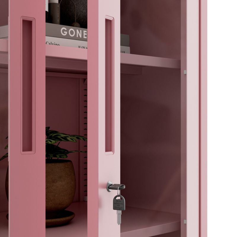 AMELIA stikla skapis ir kā plaukts, kas neļauj putekļiem nosēsties uz iekšpusē esošajiem priekšmetiem. Izcili estētisks modelis no Fresh Style kolekcijas ar stikla durvīm, ko dažādo smalkas krāsas pūderrozā tonī, ienesīs telpā svaiguma elpu neatkarīgi no tā, vai tas ir birojs, kabinets vai dzīvojamā istaba. Praktiski plaukti ar augstuma regulēšanas funkciju ļaus jums perfekti kontrolēt interjeru, lai AMELIA stikla skapis pastāvīgi priecētu ar savu izskatu.