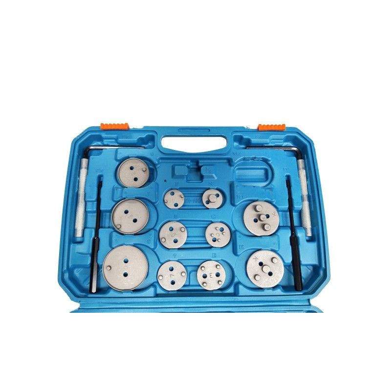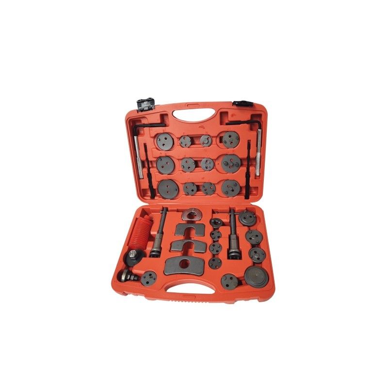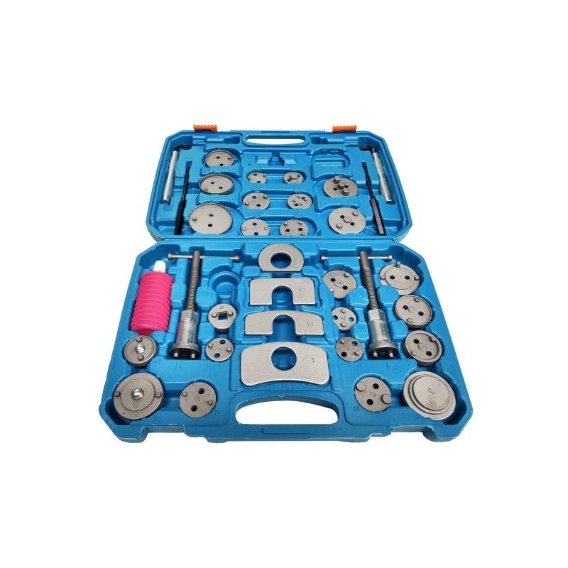 Bremžu virzuļa ieskrūvēšanas komplekts, pa labi, pa kreisi, satur 35 instrumentus, ieskaitot 2 preses gabalus (labajā, kreisajā pusē) bremžu virzuļa izņemšanai, 6 mm un 7 mm sešstūra taustiņu un divu veidu perforatorus.