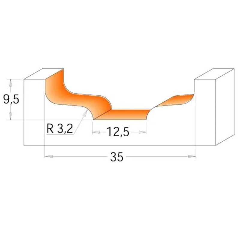 Raised Panel Bit - D35 d2-12,5 I9,5 R3,2 S-12
