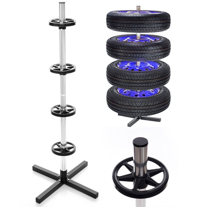 Statīvs automašīnu riteņu komplektam novērš riepu deformāciju un gaisa iztvaikošanu.