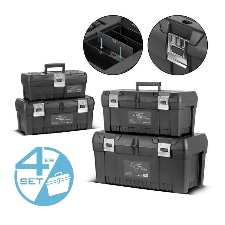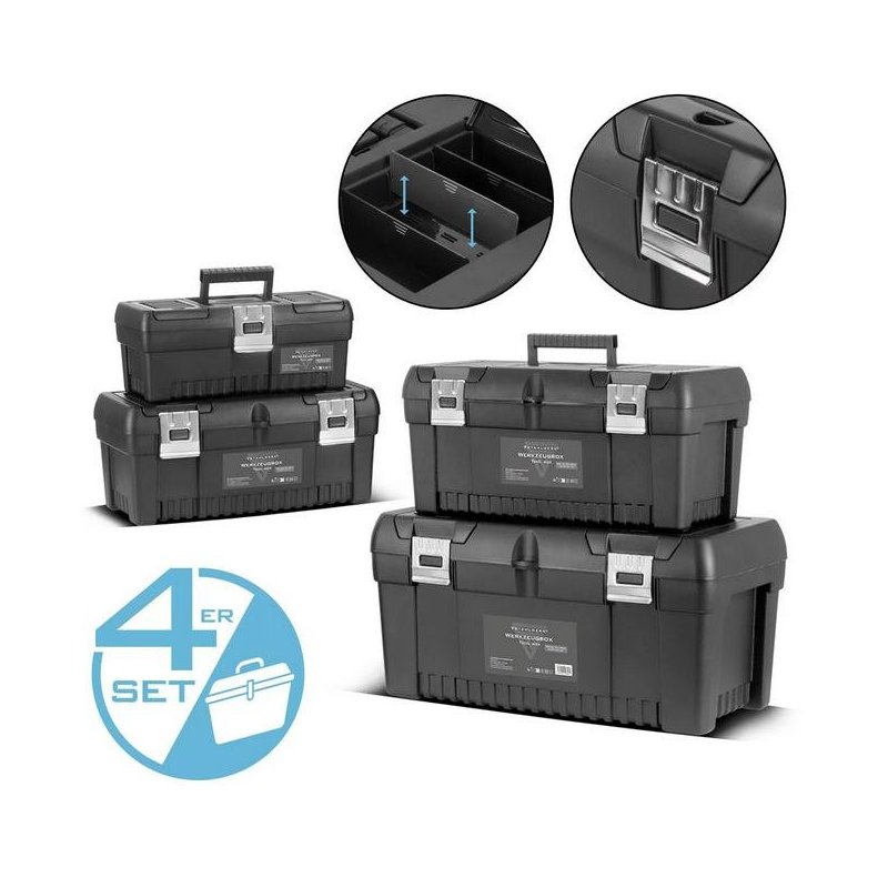 Praktiskais instrumentu kastes komplekts sastāv no četrām dažāda izmēra instrumentu kastēm un ir ideāli piemērots instrumentu un piederumu glabāšanai un transportēšanai.