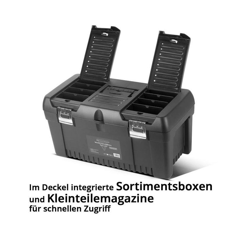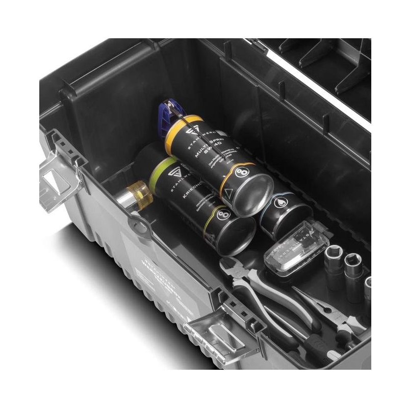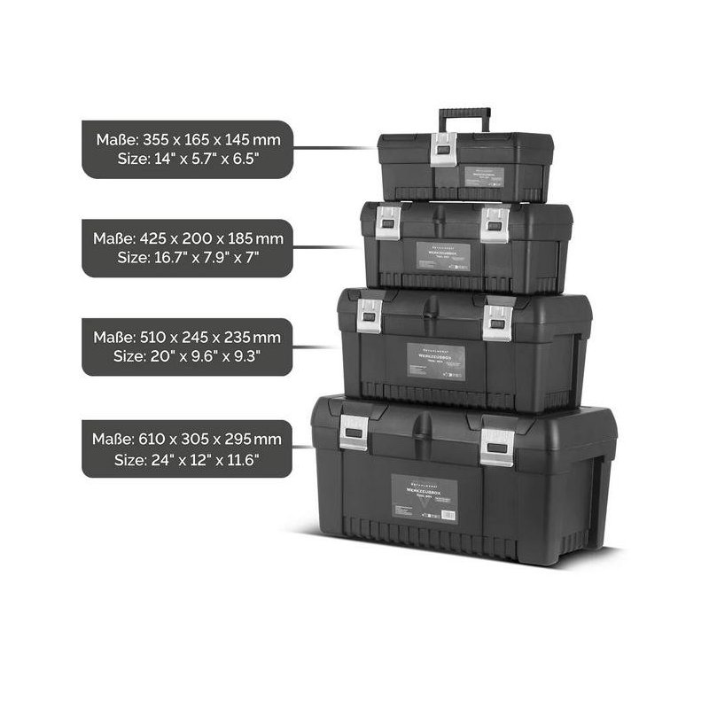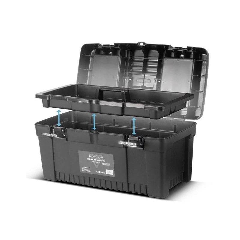 Izgatavotas no augstas kvalitātes PP plastmasas ar izturīgiem metāla stiprinājumiem, instrumentu kastes ir ārkārtīgi stabilas, ilgmūžīgas un ļoti noturīgas.