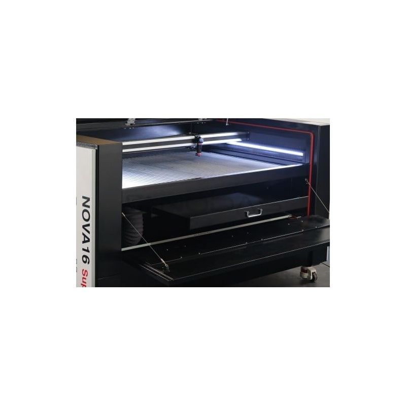 Liela formāta lāzera uzstādīšana ierobežotā telpā vēl nekad nav bijusi praktiskāka. Izbaudiet netraucētu darba telpu ar iebūvētu 5200 ūdens dzesētāju, izplūdes ventilatoru un gaisa sūkni. Visi komponenti joprojām ir viegli pieejami, un tos var noņemt, lai veiktu regulāru apkopi.
