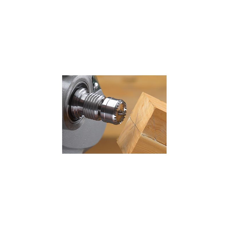 Piedziņas centra centrālā pozicionēšanas tapa ievelkas savā korpusā, kad tiek izdarīts spiediens no virpas astes, atstājot zobu gredzenu ap apkārtmēru, lai ārkārtīgi droši noturētu apstrādājamo priekšmetu, un iespīlēšanas spiediens vienmērīgi tiek sadalīts pa zobiem. Noteikšanas tapas ievilkšana nozīmē, ka tā nevar sadalīt kokmateriālus, padarot to ideāli piemērotu lietošanai mazākiem un smalkākiem darbiem.