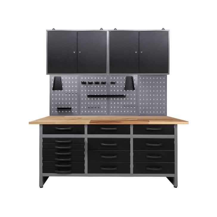 Varat arī atsevišķi novietot dažādas atsevišķas darbnīcas aprīkojuma daļas, lai izstrādātu savu darbnīcu individuāli atbilstoši savām vēlmēm. Turklāt darbnīcas aprīkojumu var viegli papildināt ar citiem mūsu darbnīcas priekšmetiem!