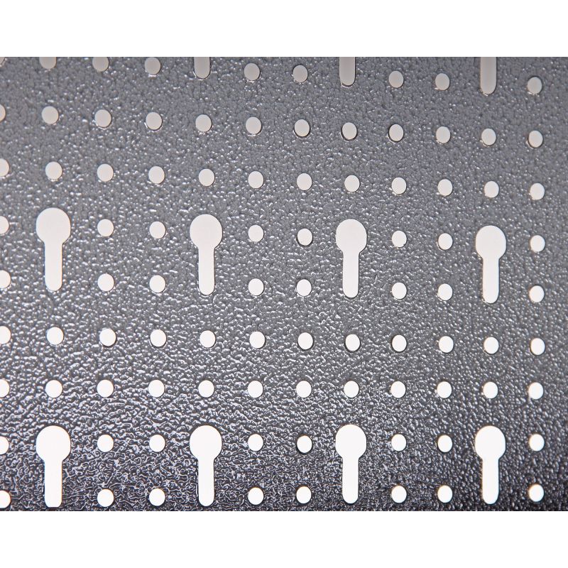 Olaf perforētā siena ir ideāls papildinājums darbagaldam jūsu darbnīcā. Perforētās sienas izmēri ir aptuveni 162 x 1,5 x 57 (H) cm , un, neskatoties uz tās milzīgo stabilitāti, tā sver tikai 1 kg. Attālums starp caurumiem ir 15 mm. Āķus var stingri iespīlēt caurumos, tāpēc tos var izmantot darbnīcas materiālu vai instrumentu turēšanai un uzglabāšanai. Varat izmantot skrūves, lai piestiprinātu cilpiņu aizmugurē pie sienas.
