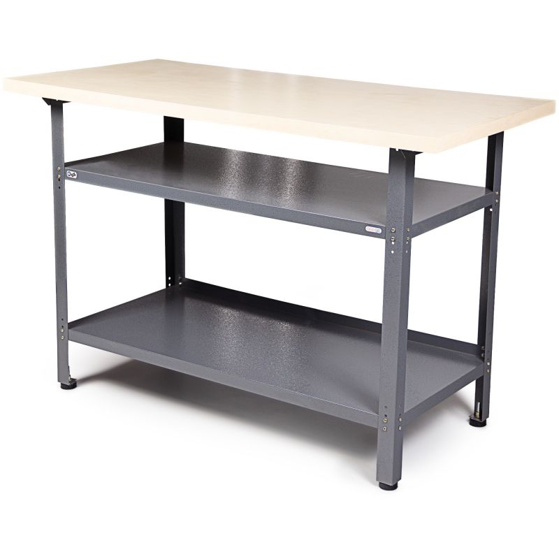 Zem darba virsmas ir divas lielas glabāšanas zonas ( katrā kopējā kravnesība 80 kg ), kur var uzglabāt apjomīgus instrumentus vai aprīkojumu, piemēram, lejkannas un urbjus. Abi starpplaukti ir aptuveni 100 x 47,5 cm lieli, un tie nodrošina ne tikai lielāku darba galda stabilitāti, bet arī nodrošina daudz vietas, ko var efektīvi izmantot. Tas nozīmē, ka jūs varat vienkārši nolikt malā instrumentus, kas netiek izmantoti, un tie nav jātraucē, kamēr strādājat. Jūs varat pilnībā izmantot darba vietu.