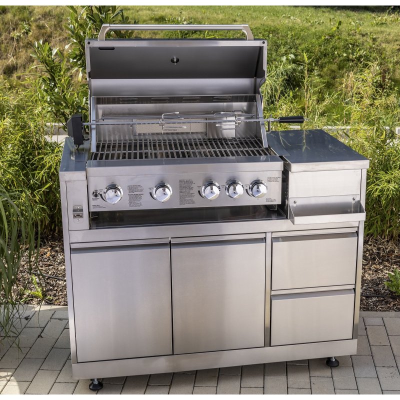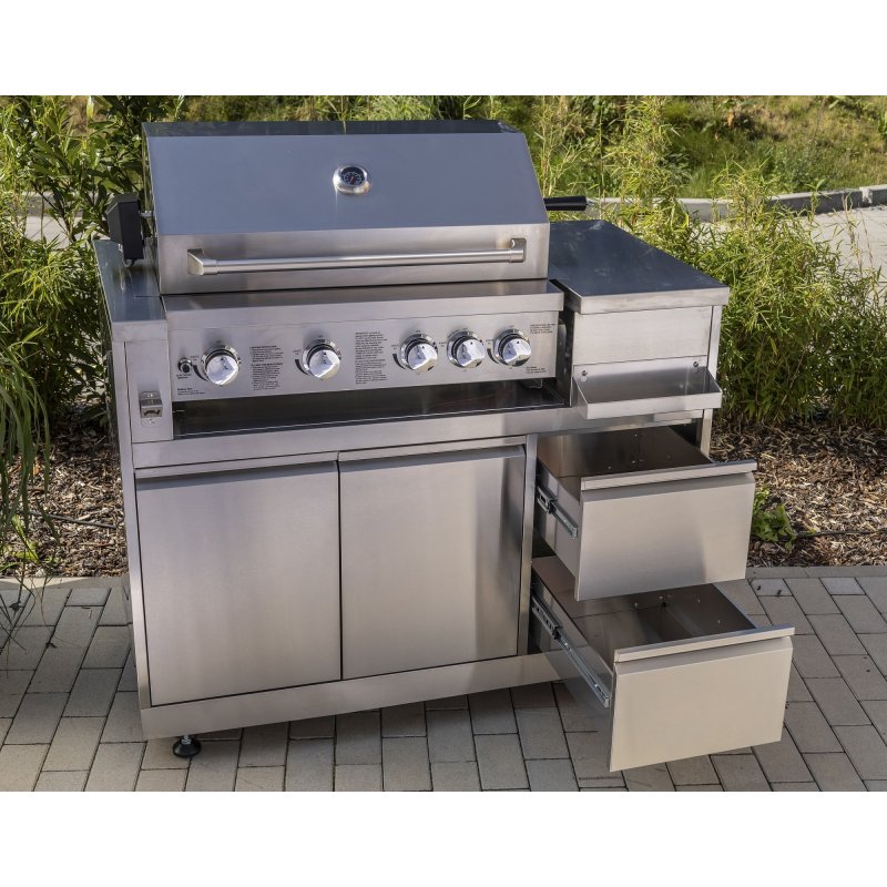 -Nerūsējošā tērauda grila konstrukcija precei 4250627292289-grila kurtuve/vāks/ratu plates-ar tauku paplāti-galvenais deglis: 4* 12000 BTU,-aizmugurējais deglis: 1* 10000 BTU-gāzes tips: šķidrā gāze-grāls-grills-grill-grill-2-2 halogēnās lampas-2 halogēnās lampas-2 tavi vasaras vakari! Atklājiet Klīvlendas gāzes grilu – savu jauno partneri neaizmirstamiem grilēšanas mirkļiem dārzā! Ar savu izturīgo konstrukciju, izsmalcinātajām funkcijām un eleganto dizainu šis grils ir ne tikai jūsu dārza iekārtojuma izcēlums, bet arī nodrošina pirmās klases grilēšanas rezultātus. Augstas kvalitātes aprīkojums ideālam grilēšanas priekam: Nerūsējošā tērauda konstrukcija: Grils pārsteidz ar izturīgu un robustu nerūsējošā tērauda konstrukciju, kas piešķir tam elegantu izskatu un augstu stabilitāti. Grila kurtuve, vāks un ratiņu plāksnes nodrošina nemainīgu kvalitāti, kas atbilst augstajām grilēšanas prasībām. Jaudīgi degļi: ar četriem galvenajiem degļiem, katrs ar 12 000 BTU, un jaudīgu aizmugurējo degli ar 10 000 BTU vienmērīgai siltuma sadalei, šis grils ir lieliski piemērots sulīgiem steikiem un kraukšķīgiem grilētiem ēdieniem. Rotisserie komplekts ir iekļauts: ideāli piemērots gaļas, mājputnu gaļas un cita veida grilēšanai, lai iegūtu papildu garšu un vienmērīgu gatavošanu. Tauku notekpaplāte: praktiskā tauku notecēšanas paplāte nodrošina vieglu tīrīšanu un uztur jūsu grilu tīru un higiēnisku. 2 halogēna lampas: lieliski apgaismo grilēšanas zonu pat tumšākos vakaros. Elegantas LED pogas: piecas ABS pogas ar zilām LED gaismām ne tikai piešķir grilam modernu izskatu, bet arī nodrošina vienkāršu darbību. CSA sertifikācija: grilam ir CSA sertifikāts, kas garantē produkta drošību un kvalitāti. Ergonomisks dizains un komforts: Praktiski plaukti un uzglabāšanas telpa: Grils piedāvā plašu glabāšanas vietu jūsu grilēšanas piederumiem, kā arī pamata skapi ar divām durvīm un papildu uzglabāšanas vietu gāzes balonam (Ø 31,7 cm). Ērtas atvilktnes: divas atvilktnes ar viegli aizveramām eņģēm piedāvā pietiekami daudz vietas papildu grilēšanas piederumiem, savukārt bezvadu dizains un ērta kabeļa atvere ļauj ērti rīkoties. Mobilitāte: Ar četriem izturīgiem 3" ritentiņiem – no kuriem diviem ir bremzes – grilu var viegli pārvietot vēlamajā vietā. PVC pārsegs: Izturīgais pārsegs aizsargā grilu, kad tas netiek lietots, un ir izgatavots no videi draudzīga 50% RPET. Produkta izmēri un specifikācijas: Kopējie izmēri: 121,6 x 66 x 96 cm grila izmēri: 3 x 6 x3 iekšpuse 6 x 5 cm Tauku notecināšanas paplāte: 76 x 45,4 cm Iesma garums: 96 cm (regulējams) Gāzes plīts: 34 x 27 cm, eņģes Grila logs: 14 x 50 cm, ērtam grilējamā ēdiena skatam. Gāzes pudeles padziļinājums: Ø 31,7 cm Šis gāzes grils apvieno lielisku grila funkcionalitāti, dizainu un komfortu vai iesācējs – šis grils paaugstinās jūsu grilēšanas prasmes ikreiz, lai sasniegtu vislabākos rezultātus. Pasūtiet jau tagad un gaidiet kulinārijas priekus dārzā!