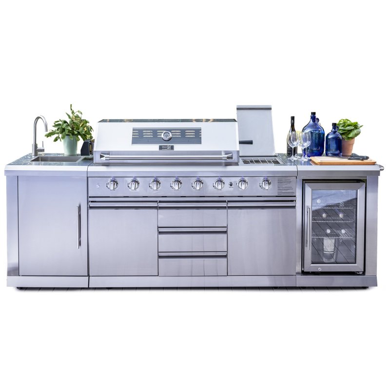 Āra virtuves gāzes grils 6 degļi ledusskapis izlietne nerūsējošais tērauds