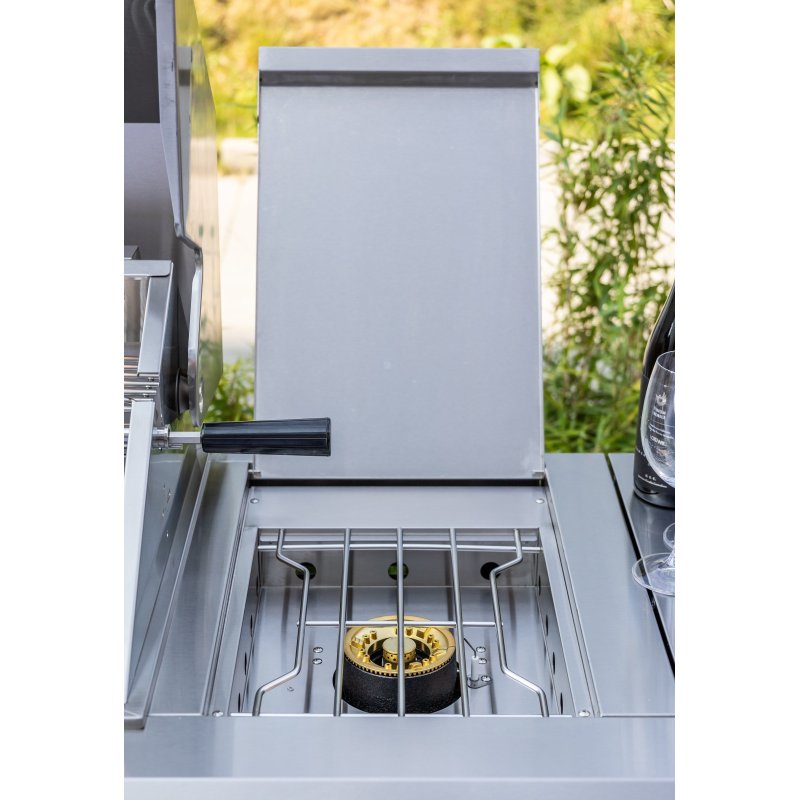 -Grilla kurtuve/vāks/ratu plāksnes-ar tauku paplāti-Galvenie degļi: 6* 12 000 BTU,-aizmugurējais deglis: 1* 10 000 BTU-Nerūsējošā tērauda kompozītmateriālu režģis-Nerūsējošā tērauda sildīšanas statīvs-Gāzes tips: LPG-Rotisserie komplekts-2 nevainojams knopperib. grilēšana ar mūsu kvalitatīvo āra virtuves grilu (preces numurs 4250627292289). Izgatavots no izturīga nerūsējošā tērauda, šis grils apvieno stilīgu dizainu ar nepārspējamu funkcionalitāti – īstiem grila meistariem un cienītājiem. Izceltie elementi: Nerūsējošā tērauda grila konstrukcija: Augstas kvalitātes nerūsējošais tērauds, kas nodrošina izturību un elegantu izskatu. Jaudīgi degļi: 6 galvenie degļi, katrs ar 12 000 BTU, un aizmugurējais deglis ar 10 000 BTU garantē precīzu temperatūras kontroli un intensīvu grilēšanas baudījumu. Daudzpusība: ar plašo grilēšanas laukumu (45x96 cm) un mazāko sildīšanas laukumu (15x96 cm) varat bez piepūles uzburt svētkus draugiem un ģimenei. Rotisserie komplekts: izbaudiet kraukšķīgus grilētus ēdienus no iesma — lieliski piemērots cepešiem, mājputnu gaļai un citiem. Pārdomātas detaļas: Nerūsējošā tērauda kompozītmateriāla grils, sildīšanas plaukts un tauku paliktnis padara grilēšanu un tīrīšanu par bērnu spēli. Ērtības: divas integrētas halogēna spuldzes un piecas augstas kvalitātes ABS grozāmās pogas ar zilām LED gaismām nodrošina optimālu vadību – pat naktī. Papildu iespējas: ar saliekamo gāzes plīti (34x27 cm) jūs paplašinat savas gatavošanas iespējas. Praktiskajās atvilktnēs un skapjos (katra 48x104x29 cm) ērti aizsniedzamā vietā varat uzglabāt visu nepieciešamo. Logs grila vākā: Pateicoties 14x50 cm skata logam, jūs vienmēr varat sekot līdzi grilētajam ēdienam, neatverot vāku. Paredzēts sašķidrinātai gāzei: ar atbilstošu gāzes balona turētāju (⌀32 cm) un CSA sertifikātu šis grils nodrošina maksimālu drošību un uzticamību. Eleganta augstas kvalitātes nerūsējošā tērauda kombinācija, iespaidīga veiktspēja un novatoriskas detaļas pārvērš jebkuru āra virtuvi par baudas vietu. Šis grils, kura izmēri ir 263 x 60 x 122 cm (P x G x A), piedāvā perfektu līdzsvaru starp spēku un eleganci – ideāli piemērots neaizmirstamiem grila vakariem zem klajas debess. Iededziet kaisles liesmu un padariet šo grilu par savas āra virtuves centrālo elementu! Pasūti tagad un pārvērt savu dārzu vai balkonu par labsajūtas oāzi! Pārveidojiet savu dārzu par greznu āra virtuvi — ar mūsu nerūsējošā tērauda komplektu prasīgākiem gardēžiem! Iedomājieties, ka stāvat sava dārza sirdī mīkstā vasaras vakarā, svaiga gaisa ieskauti, kamēr gaisu piepilda svaigi grilētas gaļas aromāts. Mūsu augstas kvalitātes āra virtuve, kas sastāv no gāzes grila, praktiska dzērienu ledusskapja un funkcionālas izlietnes, piedāvā visu, kas nepieciešams ideālai gatavošanas āra pieredzei. Nerūsējošā tērauda grils (izmēri: 60 x 147 x 122 cm) pārsteidz ar savu izturīgo, eleganto konstrukciju. Ar grila virsmu 45 x 96 cm un papildus mazāku laukumu 15 x 96 cm, jums ir pietiekami daudz vietas, lai vienlaikus pagatavotu vairākus ēdienus saviem viesiem. Pateicoties četriem jaudīgajiem galvenajiem degļiem (katrs 12 000 BTU) un aizmugurējam deglim (10 000 BTU), katrs ēdiens būs veiksmīgs neatkarīgi no tā, vai grilēsiet to ātri vai gatavojat maigi. Integrētais cepeškrāsns komplekts nodrošina, ka jūsu ēdieni tiek pagatavoti nevainojami no visām pusēm. Īpašais: jums vienmēr ir pilnīga kontrole. Praktiskais logs uz grila (14 x 50 cm) un divas halogēna lampas nodrošina, ka jūs vienmēr varat saglabāt pārskatu – pat krēslas laikā vai vēlā grila laikā. Smērvielu paliktnis atvieglo tīrīšanu, un piecas elegantās ABS pogas ar zilām LED gaismām ne tikai nodrošina funkcionalitāti, bet arī piešķir stilīgu pieskārienu. Pateicoties CSA sertifikācijai, varat paļauties uz produkta drošību un kvalitāti. Un vēl: jūs gaida plaša uzglabāšanas vieta. Ar trim atvilktnēm (48 x 43 x 14,2 cm) un ietilpīgiem skapjiem gāzes pudelēm, traukiem vai grila piederumiem (48 x 104 x 29 cm iekšpuse) jūsu āra virtuve vienmēr būs lieliski sakārtota. Protams, atspirdzinājumi ir obligāti. Elegants dzērienu ledusskapis ar stikla priekšpusi (32 x 54,5 cm) vienmēr uztur jūsu dzērienus vēsus un atsvaidzinošus. Neatkarīgi no tā, vai tas ir ledusauksts alus, limonāde vai sulas – ar vairākiem nodalījumiem ledusskapis piedāvā daudz vietas visiem jūsu dzērieniem. Vēl viens izcils ir izlietnes bloks ar nerūsējošā tērauda izlietni (33,5 x 25,5 x 21 cm) un elegantu jaucējkrānu (32 cm augsts). Ēdienu gatavošana vai trauku mazgāšana ārā nekad nav bijusi tik vienkārša. Zemāk esošajā skapī ir plaša uzglabāšanas vieta (57,5 x 93 x 60 cm), tāpēc viss nepieciešamais jums būs pa rokai. Izbaudiet neierobežotu grila jautrību, greznību un komfortu — un pārveidojiet savu dārzu par vietu pulcēšanās, baudīšanas un relaksācijai ar šo āra virtuvi. Jūsu viesi būs pārsteigti, un jūs piedzīvosiet neaizmirstamus mirkļus, radot kulinārijas šedevrus un baudot pilnībā aprīkotas virtuves ērtības brīvā dabā.