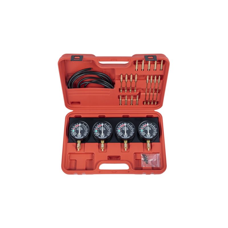 For carburetor synchronisation in multi-cylinder engines. Provides equal fuel supply for all cylinders and smooth engine work. 4pcs. vacuum & pressure gauge O85mm 4pcs. hose O5x8mm L=950mm 4pcs. adapter M5x0.8 L=170mm 4pcs. adapter M5x0.8 L=100mm 1pc. adapter 6x55mm 4pcs. adapter M6x1 L=60mm 4pcs. adapter M6x0.75 L=53mm