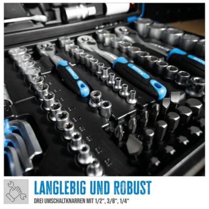 • 3 reversējamas sprūdrata atslēgas: 1/2", 3/8", 1/4" (72 zobi)