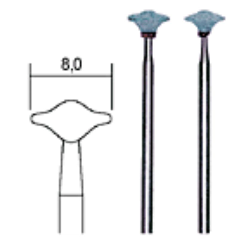 Smalkas daļiņas ar nemainīgu cietību stikla, keramikas un stelītu gravēšanai un matēšanai. Arī volframa karbīda, atdzesēta čuguna un citu cieto tērauda sakausējumu slīpēšanai. Vārpstas Ø 2,35mm.