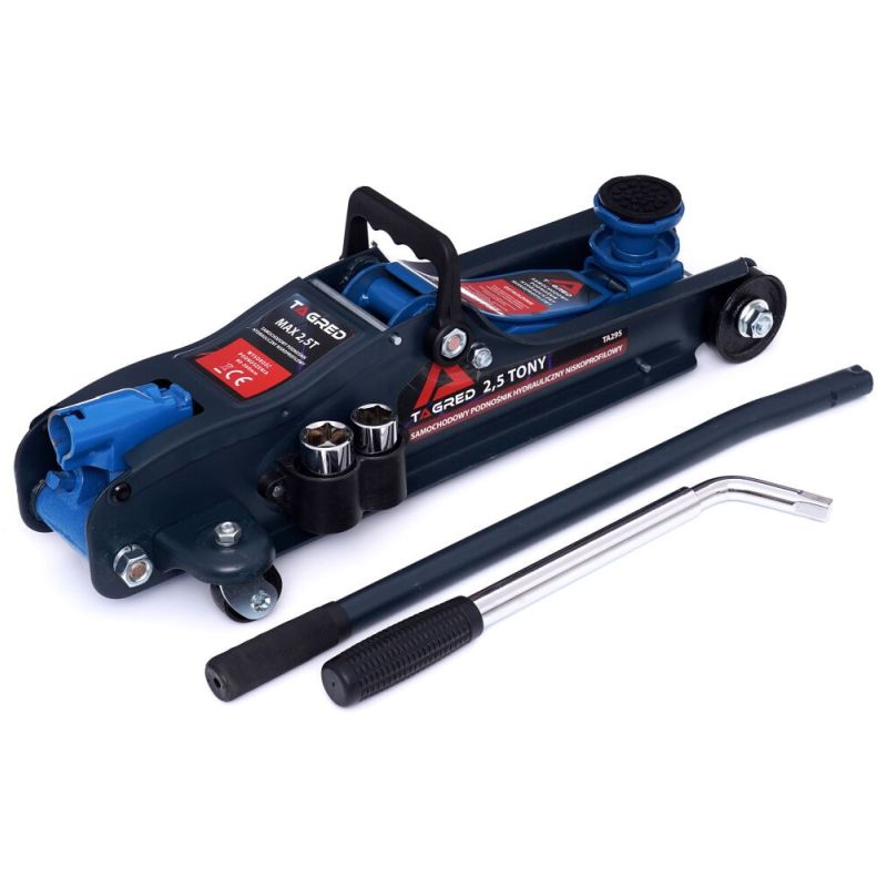 TAGRED vardes vagona domkrats ar celtspēju 2,5 tonnas ir izgatavots no labākajām velmētām tērauda loksnēm, kuras ir savienotas īpašos profilos, kas palielina konstrukcijas stingrību. Ļoti mazais sākotnējais augstums padara TAGRED pacēlāju ideāli piemērotu jebkuras automašīnas apkalpošanai, arī mehāniskajiem transportlīdzekļiem ar pazeminātu balstiekārtu – tas pat slīdēs zem vieglā automobiļa, kas ir noregulēts, lai pazeminātu piekari līdz 85 mm!