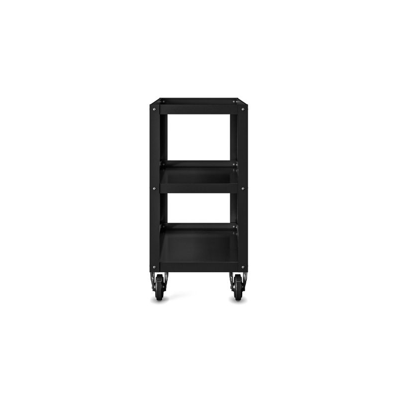 Darba ratiņi HUGO no All Black kolekcijas ir funkcionāls mēbeļu gabals, kas nodrošina, ka nepieciešamie instrumenti vienmēr ir pa rokai. Trīs plauktos var novietot uzdevuma veikšanai nepieciešamos priekšmetus. Tādējādi darbs noritēs daudz raitāk, jo Jums nevajadzēs nepārtraukti skriet starp darba vietu un instrumentu skapīti.