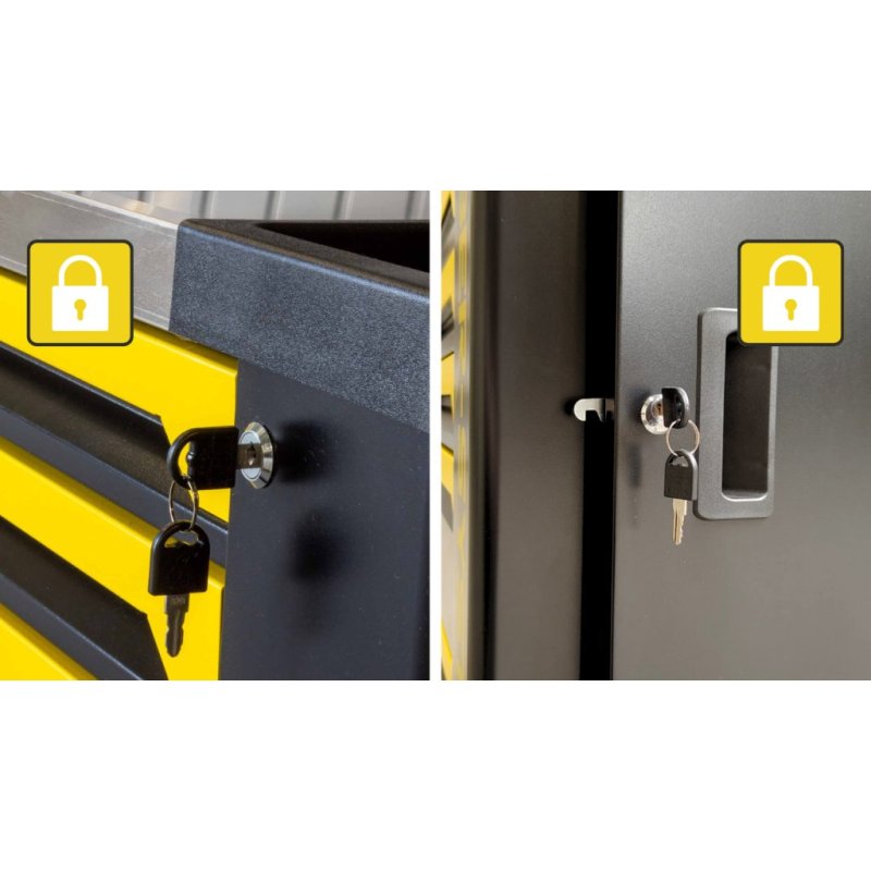 • Centrālā slēdzene + sānu slēdzams skapītis – pasargās instrumentus no nesankcionētas piekļuves