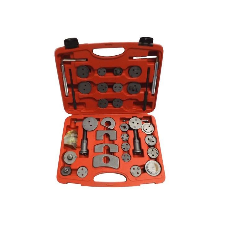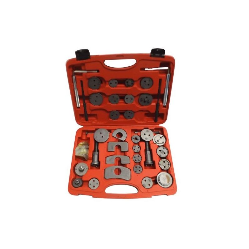 Labā virzuļa pieskrūvēšanas komplekts satur 35 instrumentus, ieskaitot 2 virzuļu gabalus (labajā kreisajā pusē) bremžu virzuļa pagriešanai, 6mm un 7mm sešstūra atslēgu un divu veidu dreifēšanas perforatorus.