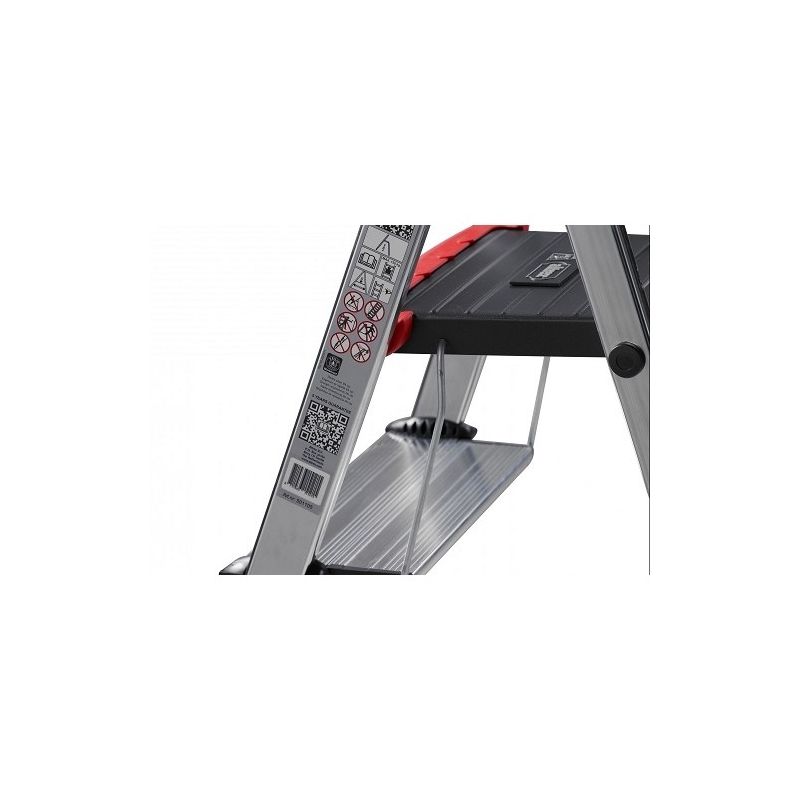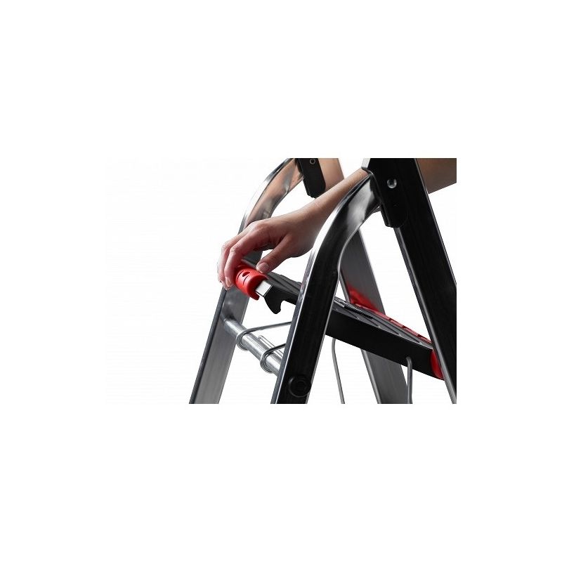 - Sadzīves kāpnes ir viegli salocīt, izmantojot HandGrip. Pateicoties vieglajam alumīnijam, Double Decker ir viegli pārvietojams.