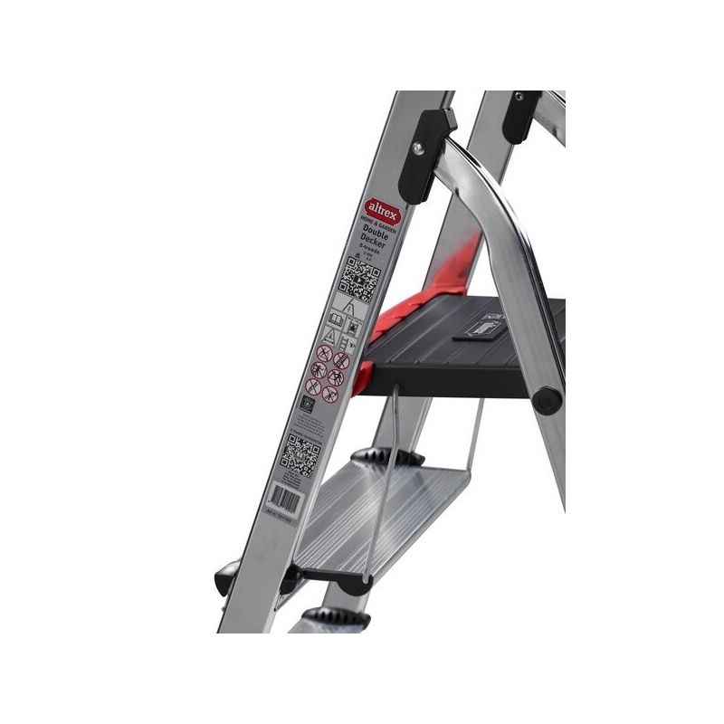 "Double Decker" ir lieliskas sadzīves kāpnes. Drošas, izturīgas un aprīkotas ar daudzām noderīgām papildus funkcijām. Šīs vieglas alumīnija kāpnes palīdzēs jums veikt nelielus mājas darbus.