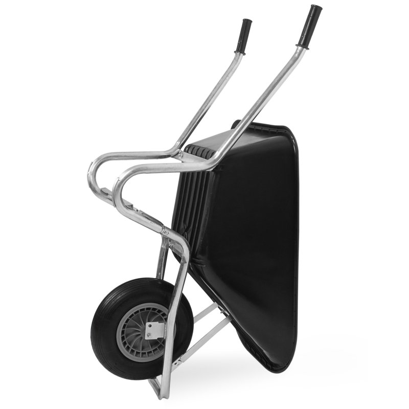Ķerra, celtniecības ķerra, dārza ķerra, apm. 140 x 54 x 67 (H) cm, tilpums 120 litri, 11 kg, īpaši liels ritenis un metāla ass, kravnesība līdz 250 kg