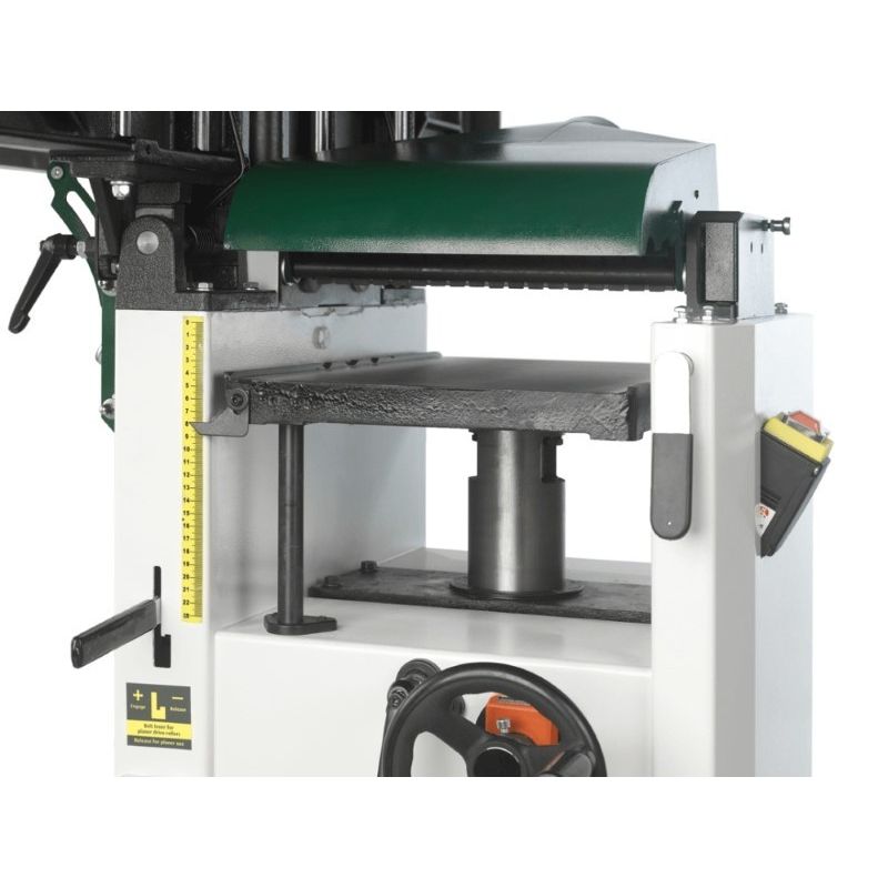 Čuguna galds ar kopējo garumu 1407 mm ļauj ēvelēt elementus līdz 310 mm platumam. Šī galdniecības iekārta , kas aprīkota ar izturīgu 2750 W indukcijas motoru, ļauj vienā piegājienā savākt 3 mm biezas skaidas.