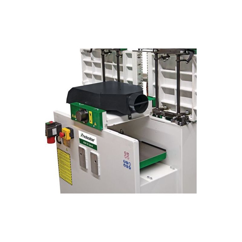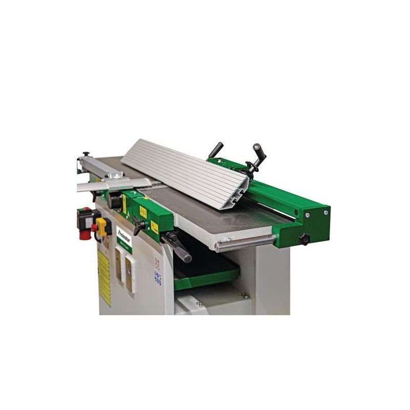 Vienlaicīga izlīdzinošo galdiņu saliekšana ar atsperu atbalstu ātrai un vienkāršai pārorientēšanai uz biezuma ēvelēšanu dažu sekunžu laikā