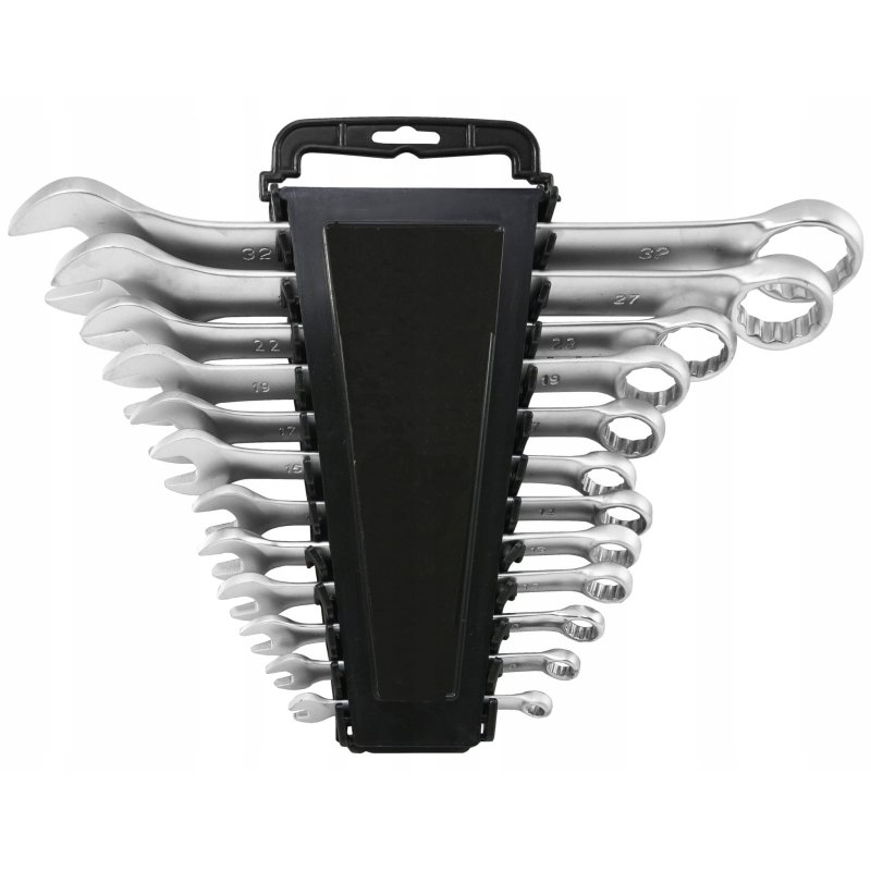 Augstas kvalitātes kombinētās uzgriežņu atslēgas, kas izgatavotas no hroma-vanādija tērauda. Paredzētas lietošanai gan mājās, gan profesionālās darbnīcās, tās atbilst DIN 3113 standartiem. Atslēgām ir estētiska satīna apdare. Tās ir iepakotas ērtā plastmasas korpusā, ietaupot vietu. Korpuss/pakaramais ir izgatavots no ļoti izturīga un ilgmūžīga materiāla, un caurums augšpusē ļauj piekārt pie sienas.