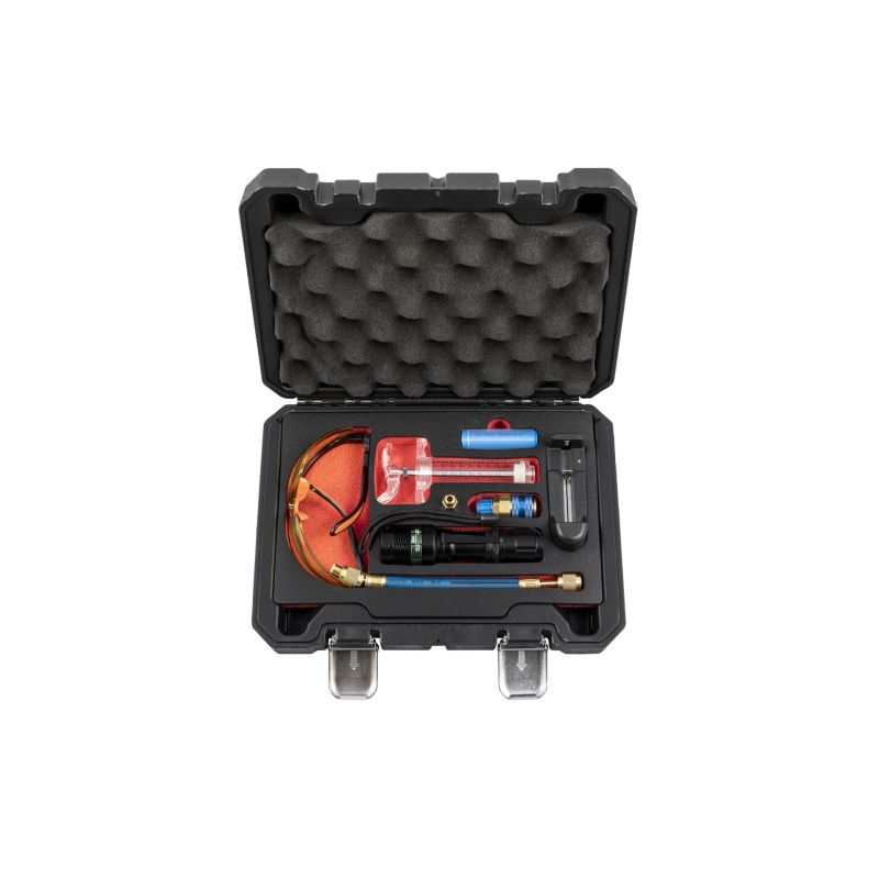 Contents: UV Glasses R134a Low-pressure Coupler Adaptor Leak Detection Fluid injector Rechargeable UV Light 230V Charger Additional Li-Ion Rechargeable Battery