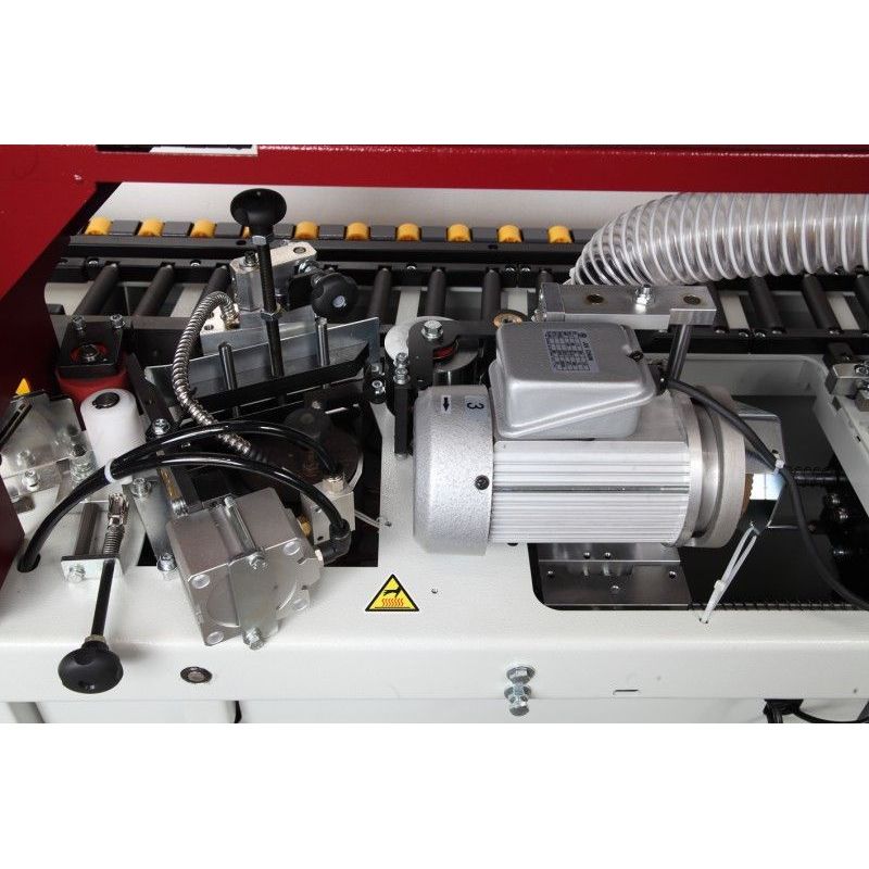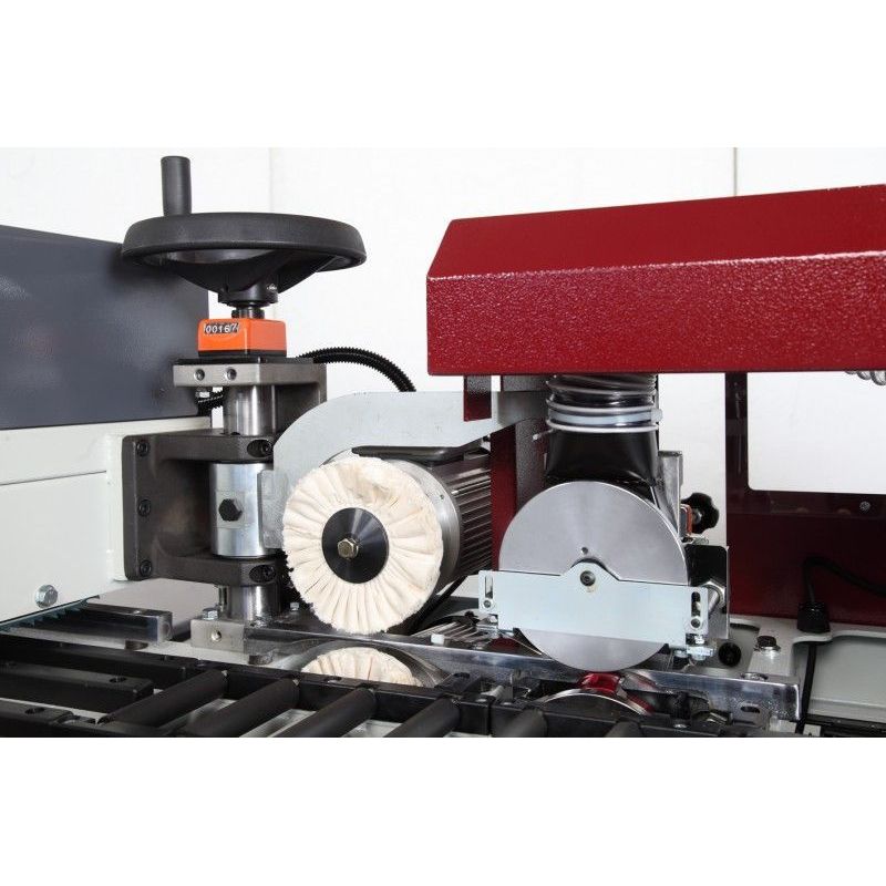 - malas līmēšana. Labu salīmēšanu starp apmali un plātni nodrošina 2 spiediena veltņu komplekts ar regulējamu spiediena spēku un atbilstošu konfigurāciju.