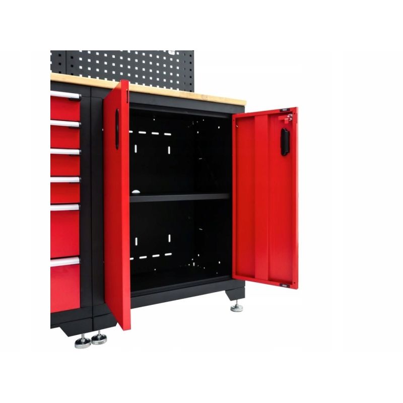 Izmantojot šo modulāro darbnīcas aprīkojuma komplektu, jums ir visa darbnīcas mēbele. Komplektā ietilpst: