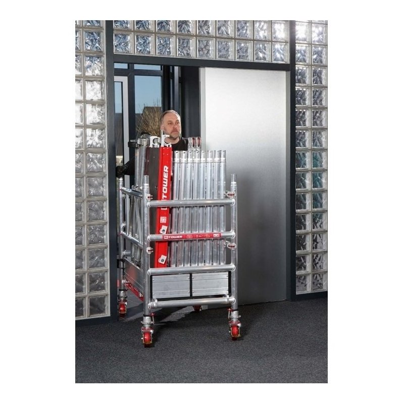 Aluminum mobilais torņa platums 0,75 m, garums 1.27 m.