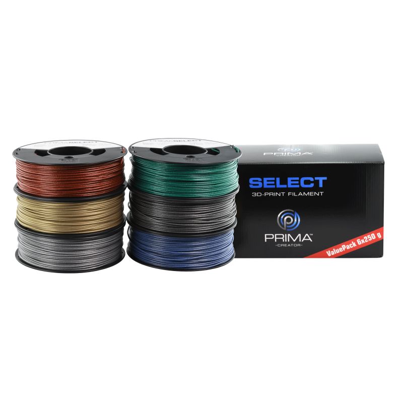 PrimaSELECT PLA ir pieejami 1,75 mm un 2,85 mm diametrā.