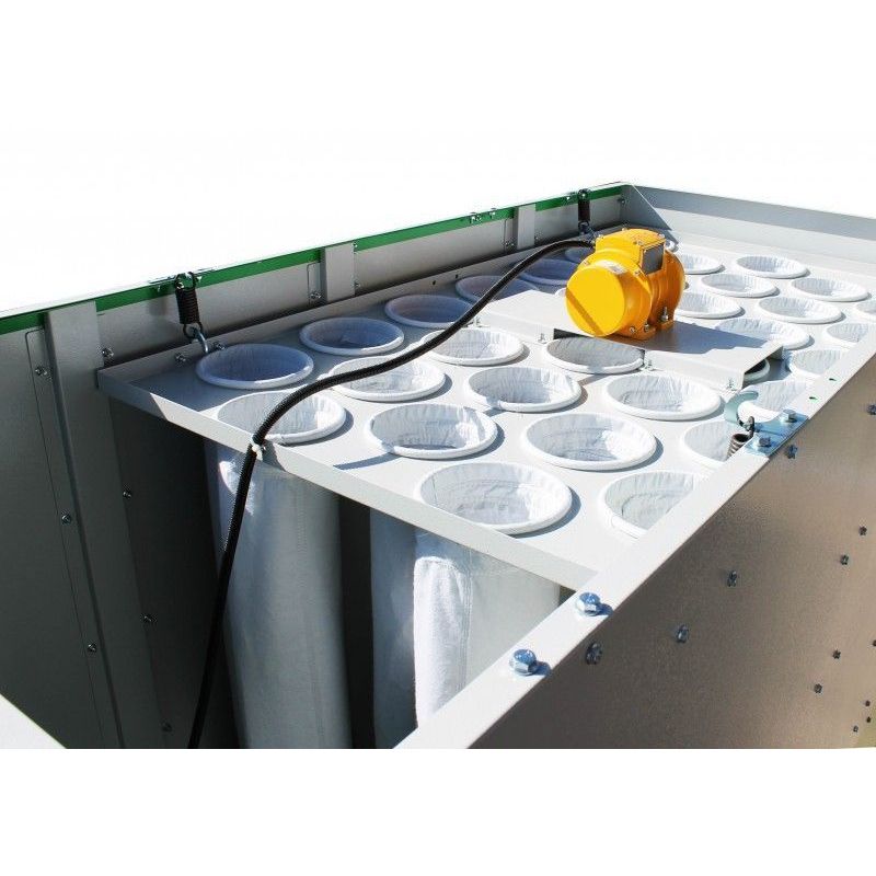 - Filtra auduma automātiskās vibrācijas tīrīšanas sistēma - pārtraukuma laikā un filtra darbības laikā - ļauj pastāvīgi uzraudzīt darbības pareizību.