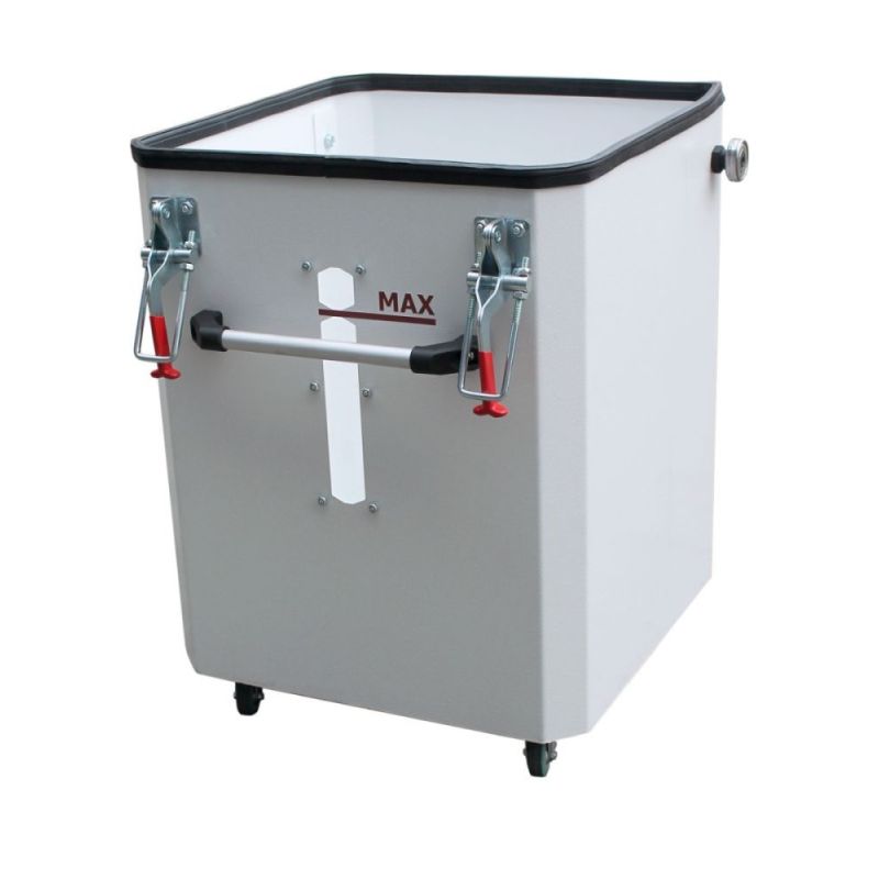 - Standarta aprīkojumā tiem ir mobilas zāģu skaidu tvertnes, kas aprīkotas ar spiediena sistēmu, kas ļauj tvertni cieši savienot ar mašīnas konstrukciju. Tas ļauj sasniegt augstu vakuuma līmeni bez zudumiem atsevišķos savienojuma punktos.