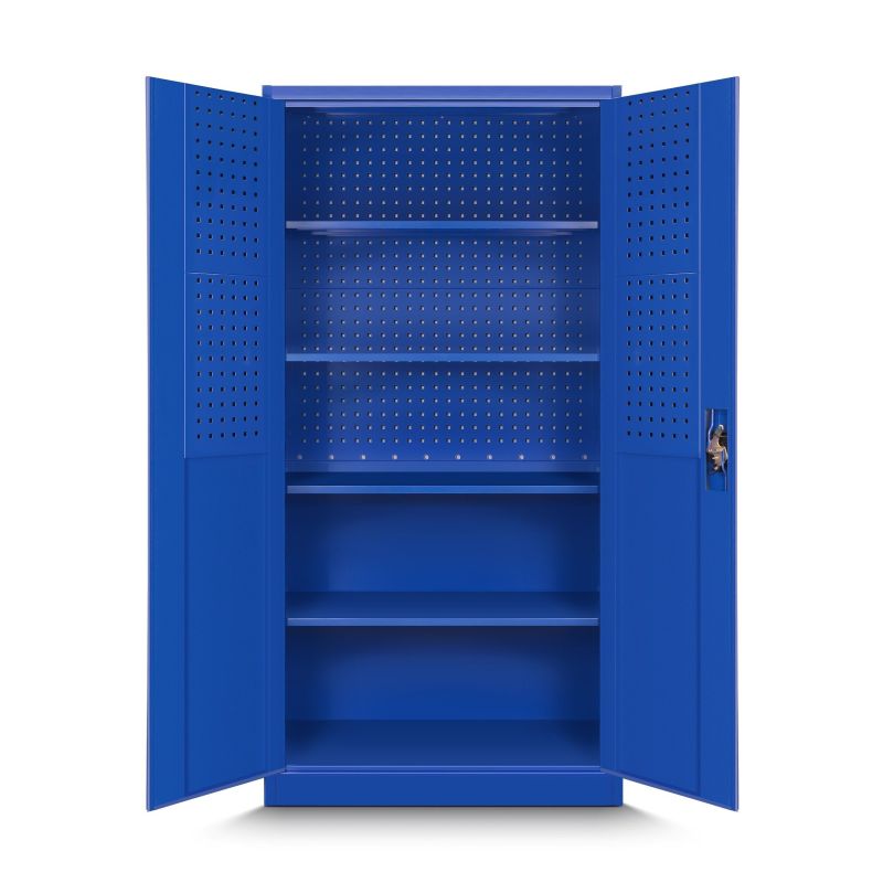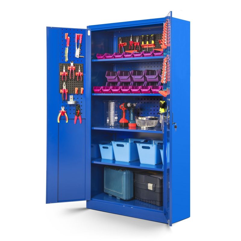 Zils JAN NOWAK skapis, modelis BRUNO – metāla darbnīcas skapis, instrumentiem, rūpnīcai, darbnīcai, 5 plaukti