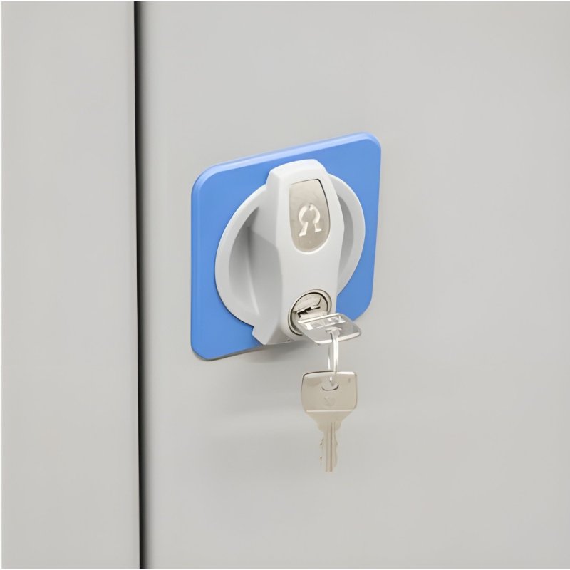 Pulverkrāsojums: RAL 5015 (korpuss) un RAL 7001 (durvis)
