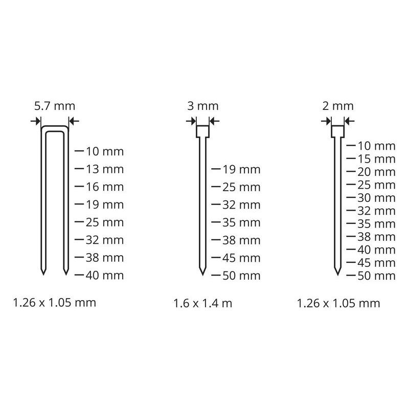 | Naglas garums 2mm: | 25/40 mm mm | |