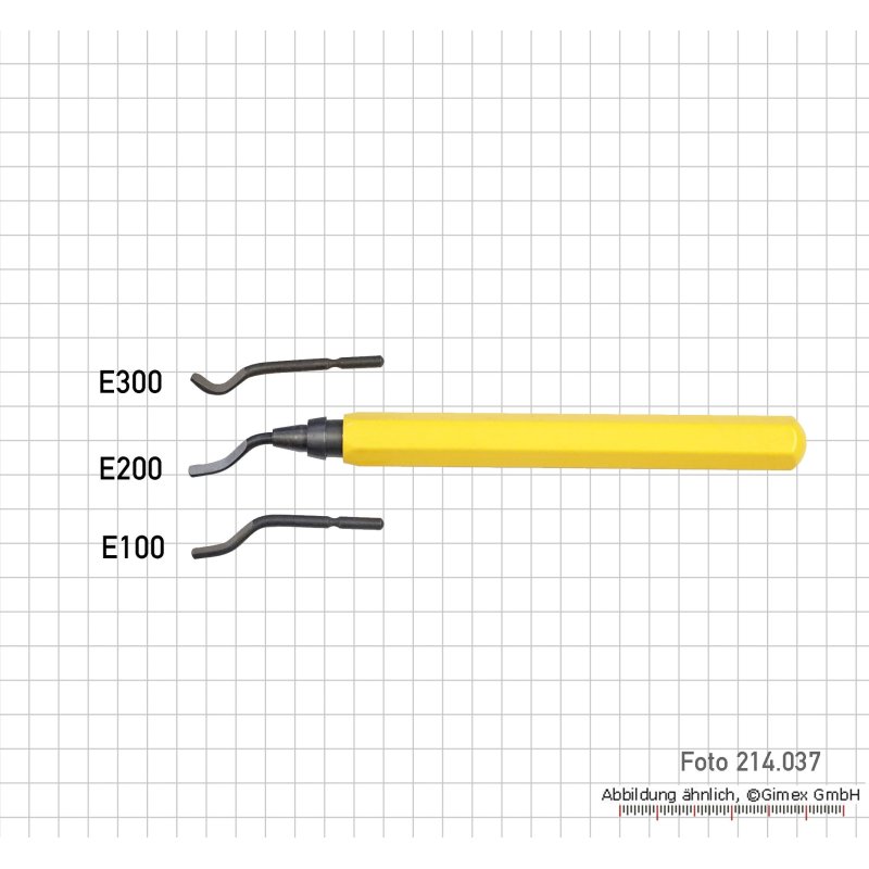 • ar trīs griezējinstrumentiem HSS, E100, E200, E300