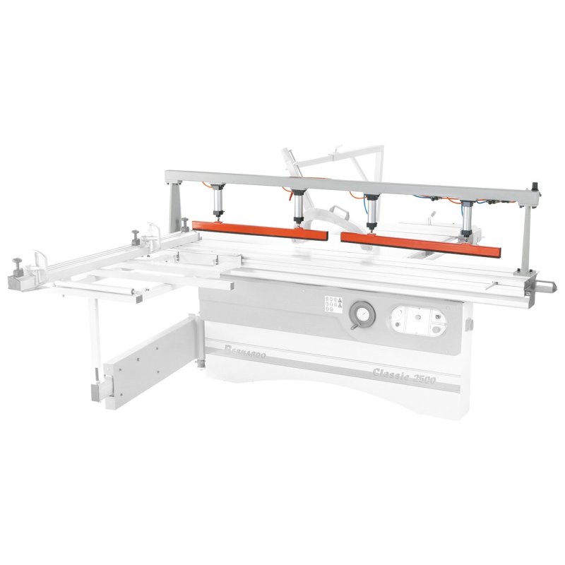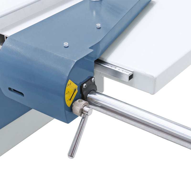 Pagarināma teleskopiskā atdure (līdz 3100 mm), uzstādāma sānu galda priekšpusē un aizmugurē