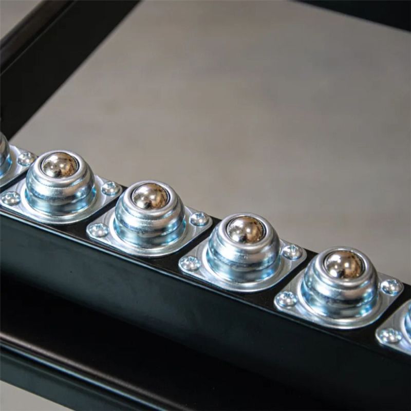 IGM lieljaudas lodīšu statīvs ir aprīkots ar trim 16 mm lodīšu gultņu rindām (8 pa trim rindām). Atbalsta virsma ir 350 × 560 mm. Tā augstums ir regulējams no 725 mm līdz 1140 mm, un to var arī bloķēt jebkurā pozīcijā, izmantojot ķīļa augstuma bloķēšanas sistēmu, lai nodrošinātu stingrus neslīdošus iestatījumus. Statīvs ir izturīgs un izgatavots no tērauda profiliem, kas spēj izturēt slodzi līdz 200 kg. Pēdas ir regulējamas pēc augstuma, lai novērstu jebkādu grīdas nelīdzsvarotību un saglabātu stabilitāti jebkurā situācijā. Statīvs ir pilnībā salokāms, tāpēc to var ērti uzglabāt vai transportēt. Statīvs nodrošina atbalstu lieliem materiāliem.