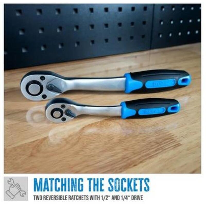 • 1 reversa sprūdrata atslēga 1/2" + pagarinātājs 5"