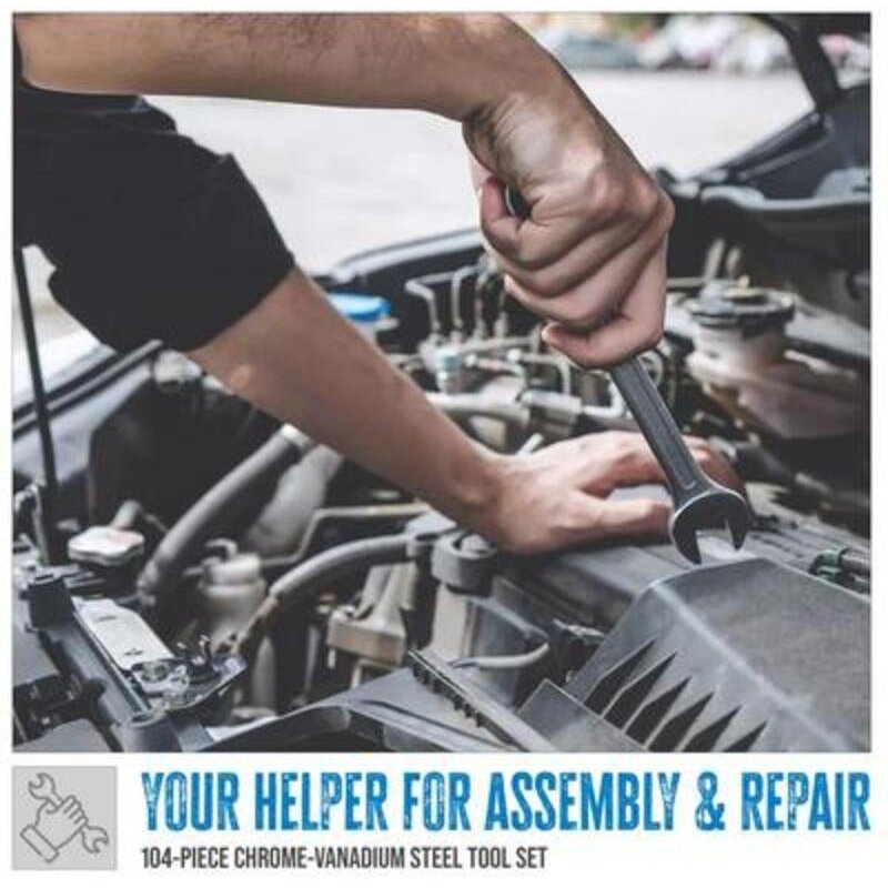104 daļu hroma vanādija tērauda instrumentu komplekts praktiskā koferī