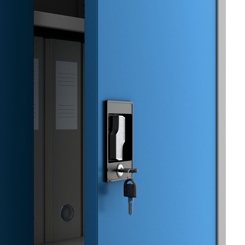 BEATA metāla skapītis ir uzticams risinājums, kas īpaši labi darbojas birojos, klīnikās, darbnīcās un valsts iestādēs. BEATA modelis sastāv no cieta korpusa, kas izgatavots no 0,6 mm bieza pulverkrāsota tērauda, un diviem plauktiem. Durvis ir aprīkotas ar trīspunktu slēdzeni, pateicoties kurai glabātie dokumenti, zāles vai instrumenti būs drošībā un pieejami tikai privilēģiju turētājiem.