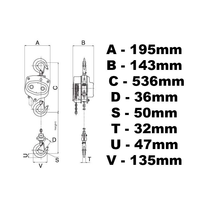 H3000 - ķēdes āķa vinča 3000kg 3t